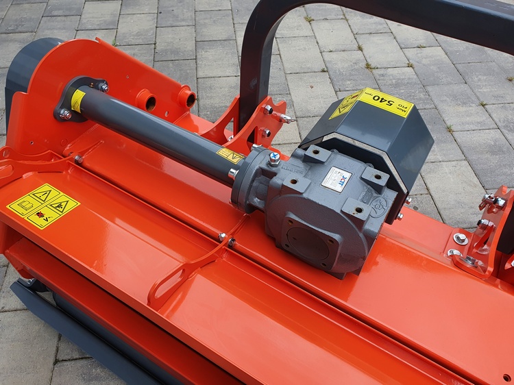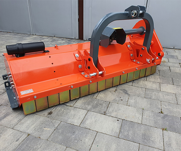 Stražnji malčar za traktore od 25 do 65 KS. Pogodan za travu i grmlje od 4 do 5 cm.